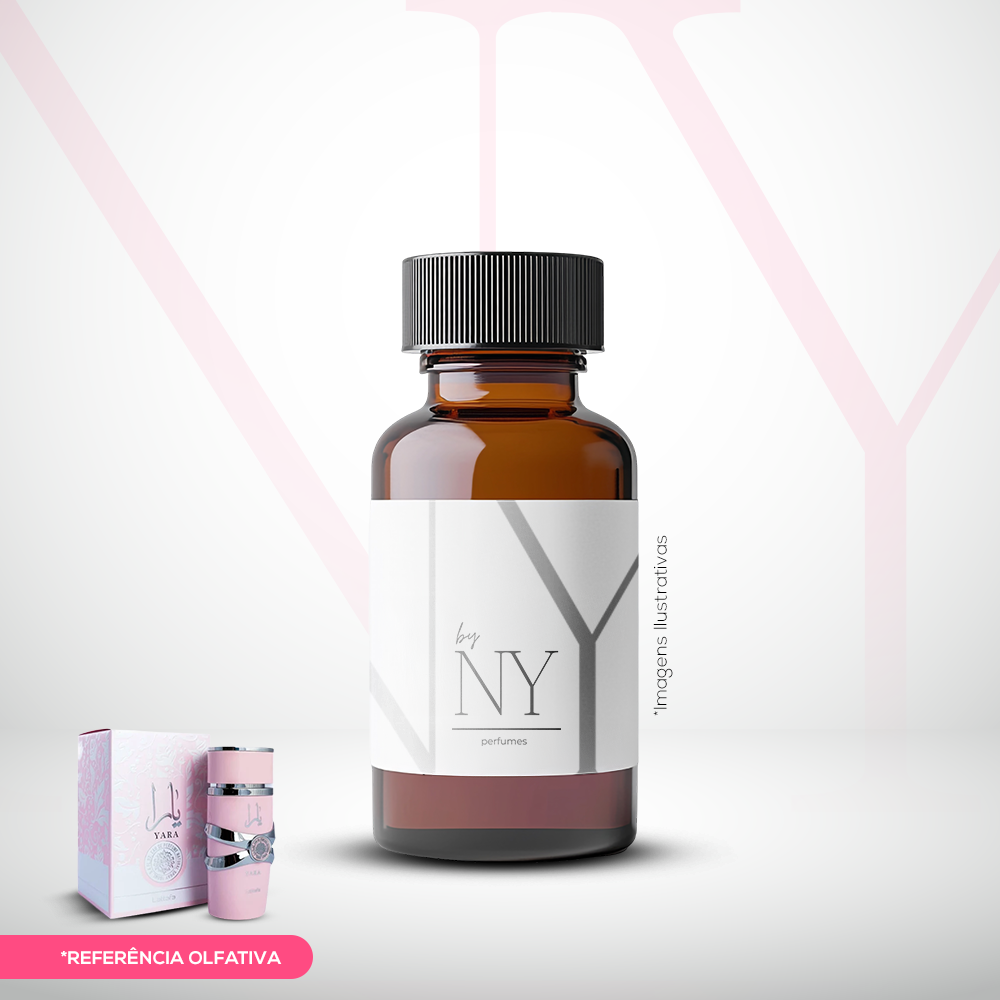 Essência inspirada Yara Lattafa com notas intensas de orquídeas, tangerina e frutas tropicais. Kit completo para preparo de perfumes em opções de 60 ml ou 100 ml.