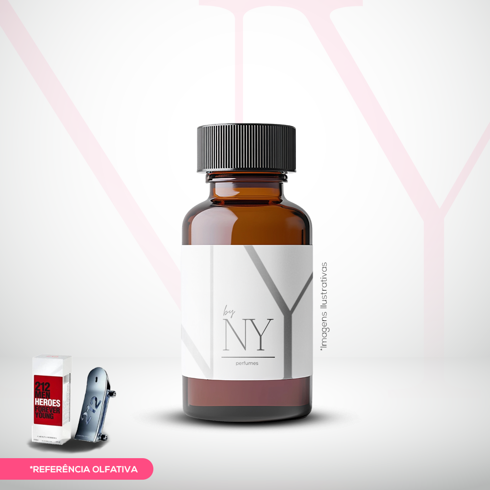 Essência inspirada 212 Heroes Masculino Carolina Herrera com notas de pera, cannabis, gengibre, almiscar e couro, em kit completo de preparo disponível em 60 ml ou 100 ml.