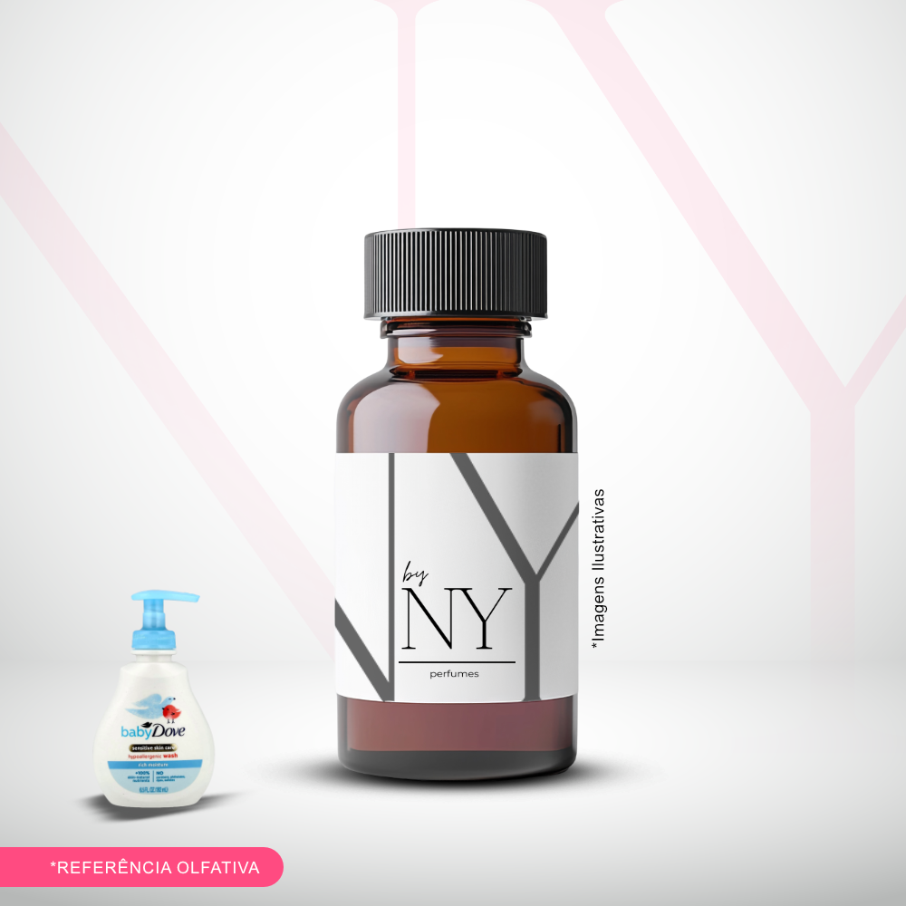 Essência inspirada Baby Dove, em kit completo de preparo disponível em 60 ml ou 100 ml.