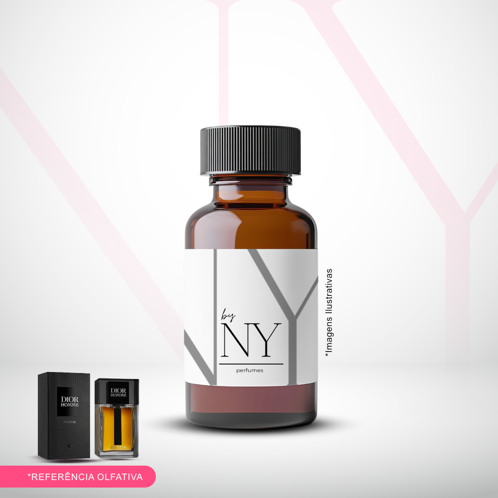 Essência inspirada Dior Homme Intense com notas de lavanda, íris, ambreta e pera, em kit completo de preparo disponível em 60 ml ou 100 ml.
